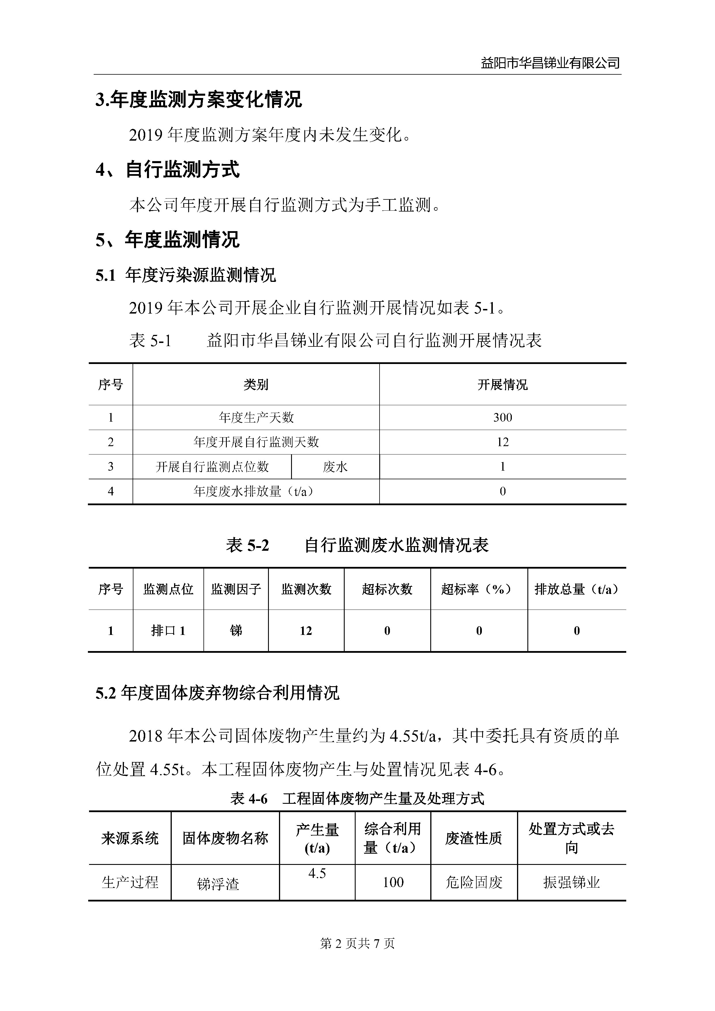 益陽市華昌銻業(yè)限公司2019年企業(yè)自行監(jiān)測報告