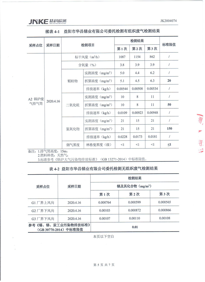 華昌銻業(yè)2020年環(huán)境監(jiān)測數(shù)據(jù)公示